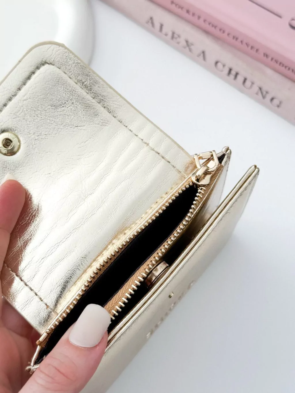 - Diseño Funcional: Amplios compartimentos para organizar tarjetas y billetes.